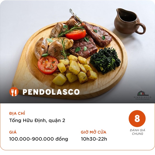 Vie Omachi: “Mình ăn ở đây rất thường xuyên. Nhà hàng rộng rãi, thoải mái, phục vụ nhanh chóng. Khách tới ăn được miễn phí phần bánh mì chấm sốt. Đồ ăn chế biến chuẩn Ý, hợp khẩu vị với cả người châu Á và châu Âu. Pizza được nướng bằng lò nung lửa đúng chất truyền thống, vỏ bánh giòn. Bạn nào muốn thử qua món Ý nên ghé nhà hàng này một lần”.