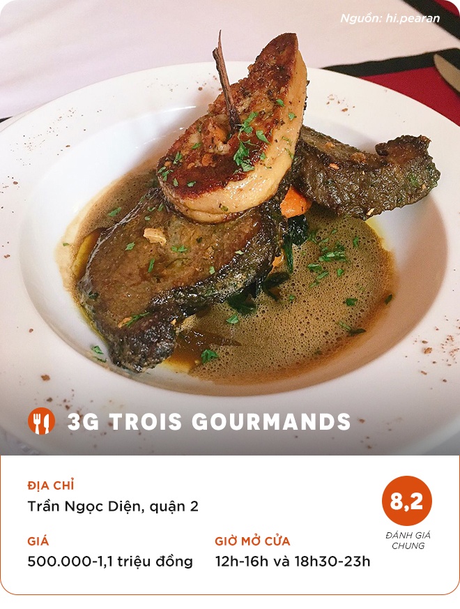 Ivvy Vo Hoang: “Nhắc đến nhà hàng Pháp mình sẽ nghĩ tới chỗ này. Đồ ăn ổn và phục vụ chu đáo. Phô mai chế biến ngon nhưng quá nhiều. Nhà hàng nên cân nhắc giảm lượng đồ ăn vì gọi set rất nhiều món. Lần này mình gọi bánh chocolate, ngon hơn lần trước ăn macaron. Nếu muốn uống rượu, bạn nên gọi nguyên chai sẽ ngon hơn gọi ly. Nhà hàng có khá nhiều rượu để chọn và có thể làm wine pairing”.