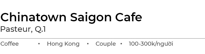 Chinatown Saigon Cafe lấy bối cảnh từ những bộ phim điện ảnh Hong Kong thập niên 90 với ánh đèn LED nhiều màu, vật dụng trang trí kiểu retro. Tôi thường xuyên thấy bạn bè check-in tại địa chỉ này nhưng chưa có dịp đến thử.
