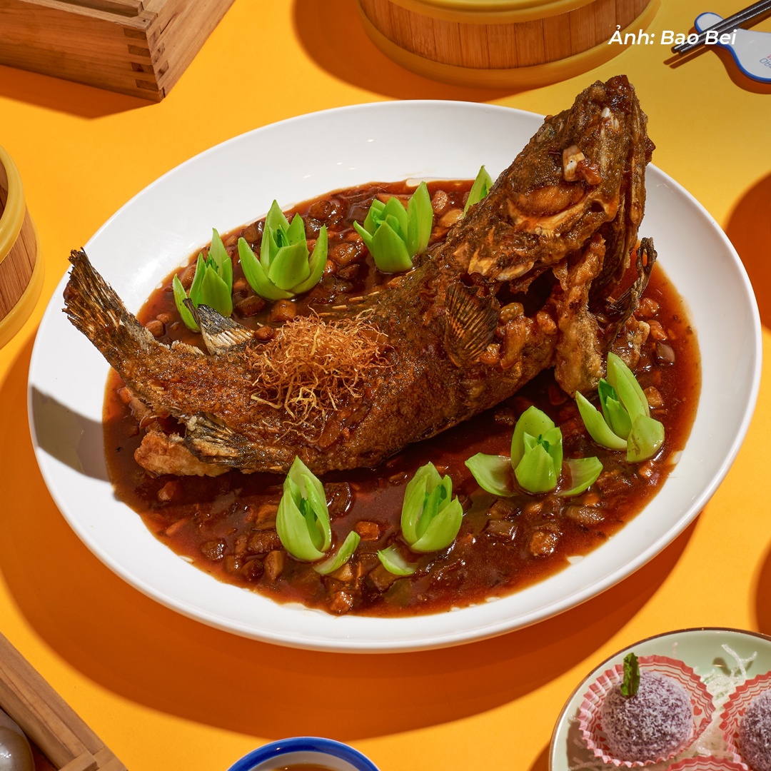 Món nên thử: Há cảo sò điệp, cơm gà nhúng chảo, À Mà tam bảo (combo BBQ)...