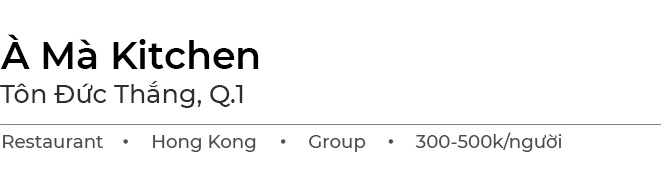 Thêm một gợi ý để thực khách TP.HCM khám phá nền ẩm thực xứ Cảng thơm là À Mà Kitchen. Cả hai lần tôi ghé, quán đều khá đông. Vậy mới thấy việc đặt trước bàn để không phải đợi lâu là điều cần thiết, đặc biệt vào giờ cao điểm.