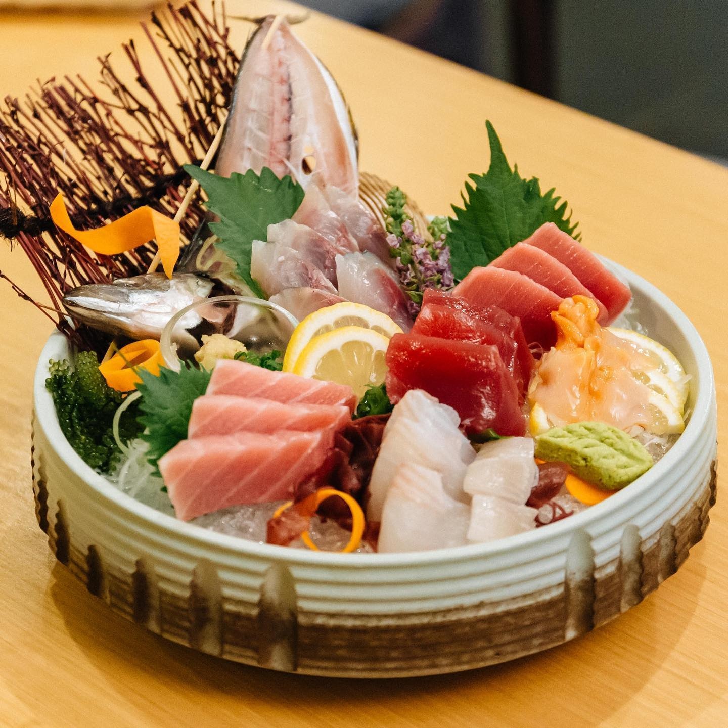 Món ăn gợi ý: Cơm với các loại hải sản sống, đầu cá Kampachi nướng muối, nigiri cá ngừ Nhật, lòng heo kho kiểu Nhật, salad Romaine sốt Caesar với tôm và bơ...