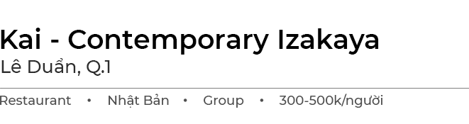 Kai - Contemporary Izakaya, với kiểu trang trí hiện đại, không gian riêng tư, yên tĩnh, là điểm đến bạn có thể ghé trong các cuộc hẹn bạn bè, đối tác.