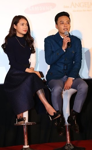 | Nhã Phương và Hồng Đăng trong buổi họp báo ra mắt phim. |