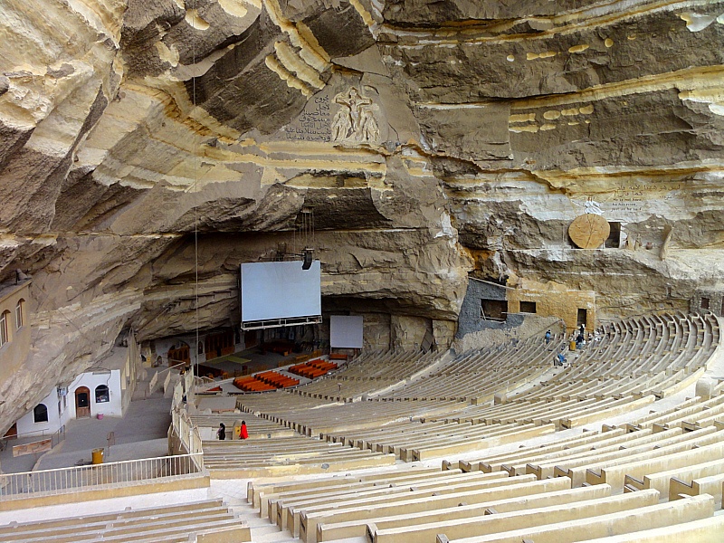 Tu viện Thánh Simon hay còn gọi là nhà thờ hang nằm trong núi Mokattam ở đông nam thủ đô Ai Cập, được xem là nhà thờ lớn nhất Trung Đông trong một khu vực ngập đầy rác thải.