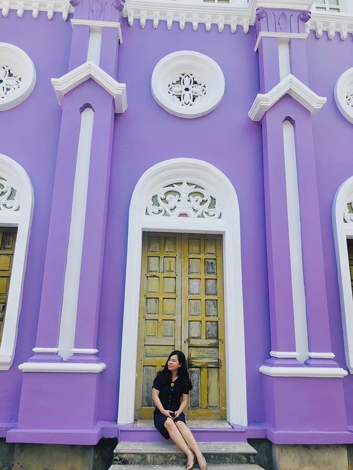 | Nhà thờ trông như lâu đài cổ tích khiến bạn cảm tưởng như lạc đến xứ sở kỳ diệu. Màu tím hiện đại hòa hợp và tôn lên dáng vẻ, đường nét kiến trúc cổ kính vốn có của công trình. Về màu sắc, không phải ngẫu nhiên giáo họ Xuân Yến lại chọn tông màu tím để khoác lên lớp áo mới cho ngôi thánh đường. Bên cạnh sự độc đáo, tinh tế, màu tím còn thể hiện nhiều ý nghĩa khác trong Thiên chúa giáo. Ảnh: Nhật Vũ. |