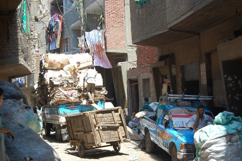 Dân cư ở khu vực này còn được gọi là Zabbaleen - hậu duệ của các nông dân di cư từ thượng Ai Cập đến Cairo trong những năm 1940 và sống chủ yếu bằng nghề nhặt rác. Do những vụ mùa thất thu và cuộc sống nghèo đói mà họ tìm đến đây để mưu sinh. Đầu tiên, họ nuôi lợn, dê, gà cùng một số loài động vật khác. Nhưng sau đó, họ thấy rằng nhặt rác ở xung quanh thành phố đem lại cuộc sống tốt hơn.