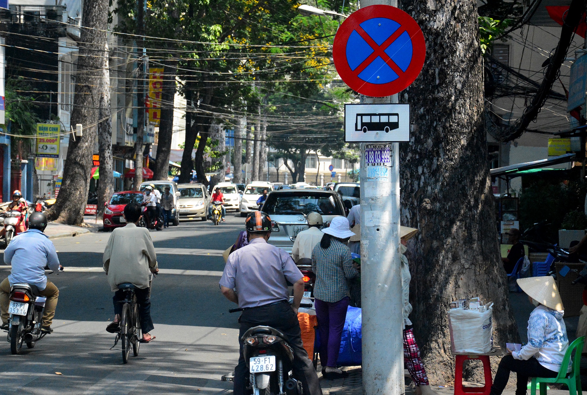 Ngày 17/2, Sở đã gắn biển giao thông cấm dừng đậu xe chở khách từ 9 chỗ trở lên thay biển báo cấm đậu ngày chẵn lẻ trên đường Nguyễn Thái Bình và Lê Thị Hồng Gấm (quận 1). |