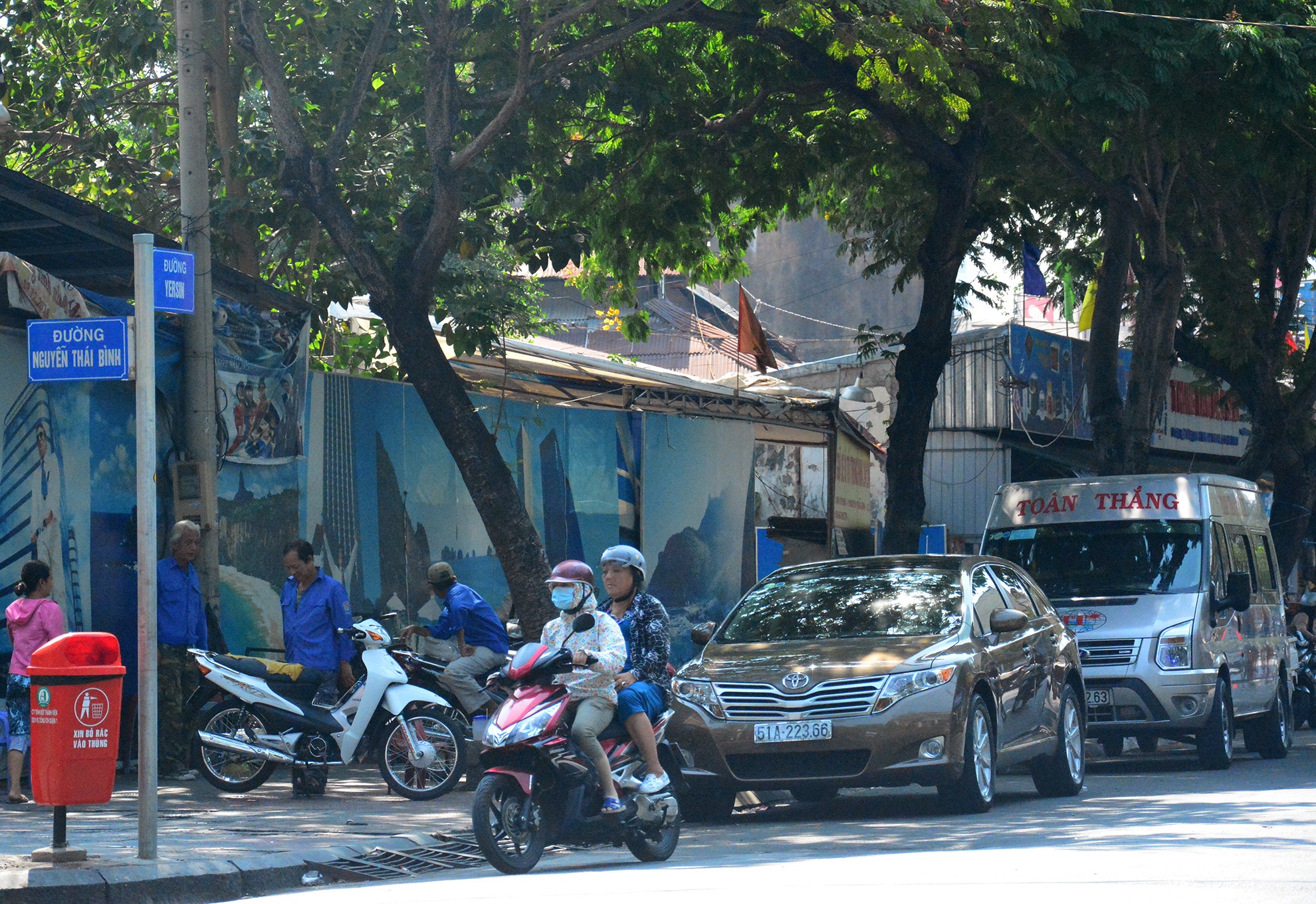 | Trong khi đó, các xe khác của một số doanh nghiệp vận tải cho phương tiện chạy loanh quanh hoặc đậu dọc các tuyến đường gần Lê Thị Hồng Gấm và Nguyễn Thái Bình như Phó Đức Chính,
