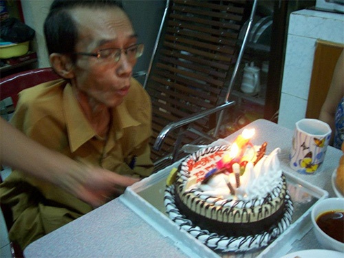 | Hình ảnh NS Trần Thiết Hùng trong tiệc sinh nhật năm 2012, nhưng giờ đây ông đã là người của thế giới khác. |