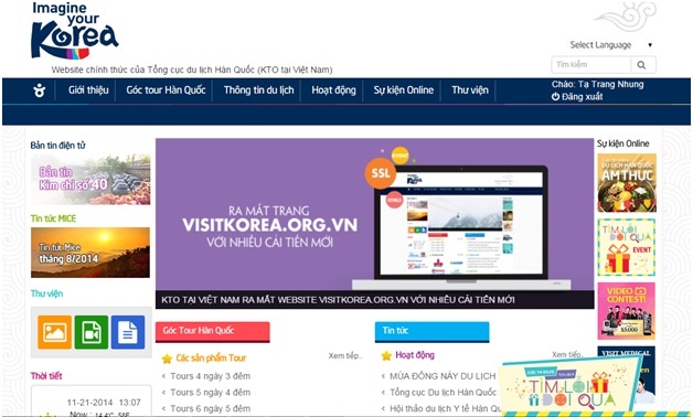 | Giao diện mới sinh động và nhiều tiện ích của Visitkorea.org.vn. |