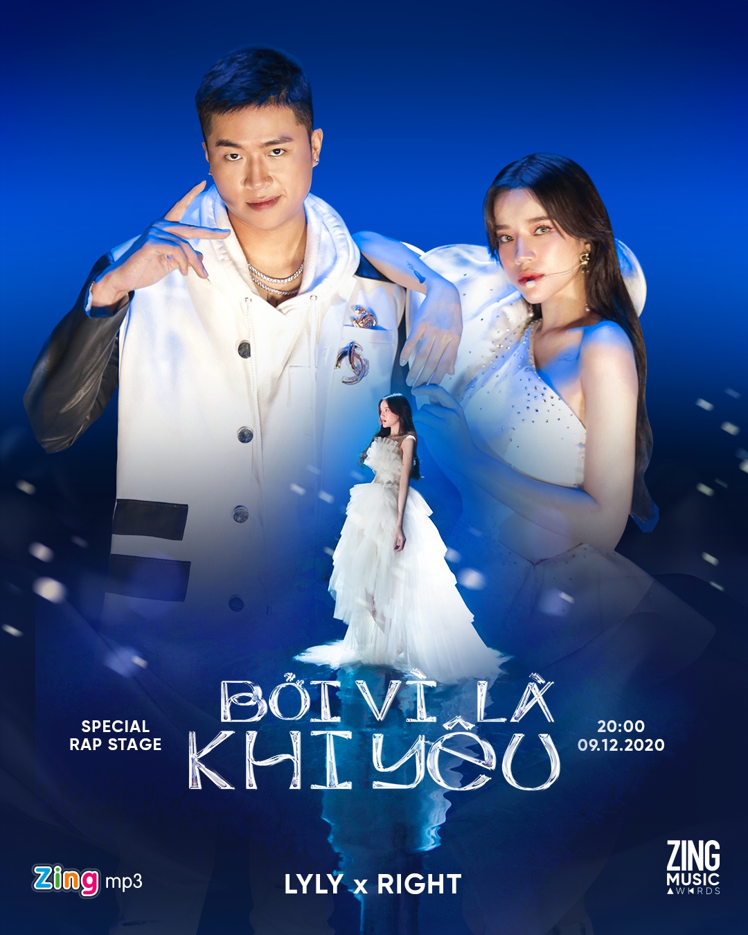 | LyLy lần đầu kết hợp cùng Right ngay trên sân khấu ZMA 2020. Bản hit Bởi vì là khi yêu được nam rapper viết thêm phân đoạn rap và thể hiện. |