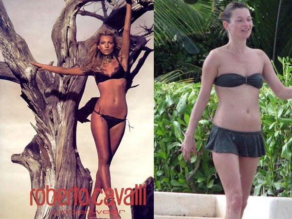 | Siêu mẫu hàng đầu thế giới Kate Moss cũng gặp tình trạng tương tự như mọi phụ nữ đã sinh con, tích mỡ nơi vòng eo. |