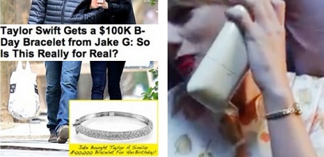 | Taylor Swift từng được Jake Gyllenhaal tặng một chiếc vòng trị giá 100.000 USD. Chiếc vòng này cũng được cô sử dụng trong MV We Are Never Ever Getting Back Together. |