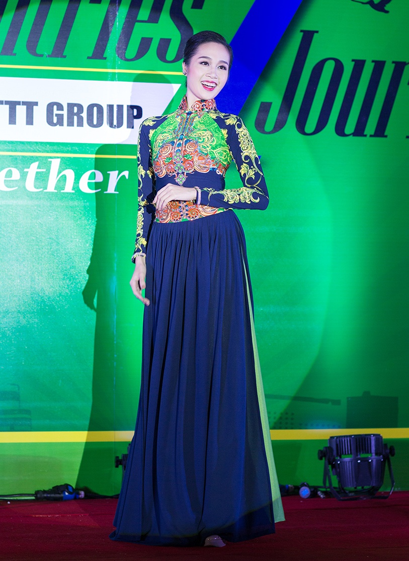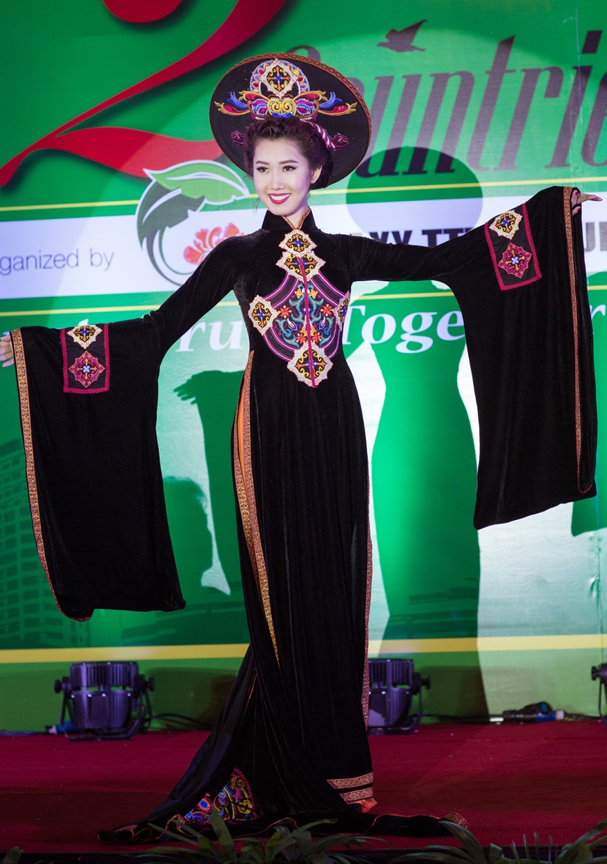 | Nhận lời mời từ phía Malaysia, nhà thiết kế áo dài Nhật Dũng và nhà thiết kế Đoan Trang cùng dàn mẫu Việt đã có buổi trình diễn bộ sưu tập mới tại nước bạn. Buổi diễn nằm trong khuôn khổ chương trình ký kết hợp tác xúc tiến thương mại giữa hai quốc gia với chủ đề Hương sắc Việt Nam. Trong ảnh, người mẫu Thúy Ngân diện mẫu thiết kế đặc sắc nhất làm vedette show thời trang. |