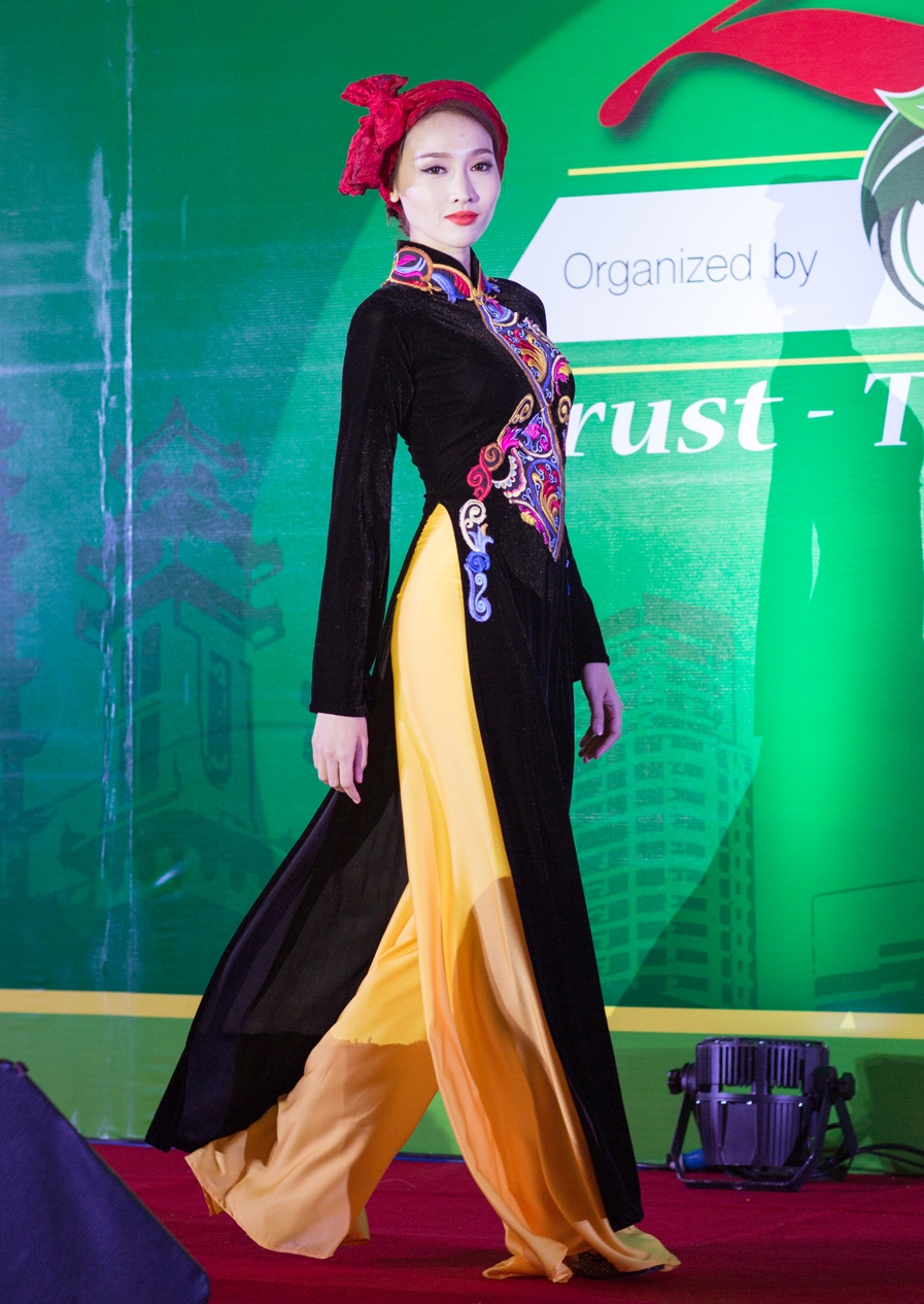 | Bộ sưu tập tiếp theo hướng đến vẻ đẹp truyền thống. Văn hóa cung đình được cách tân hiện đại và quý phái. Khăn vấn được biến hóa hiện đại, họa tiết cổ truyền nổi bật trên nền vải nhung sang trọng. |