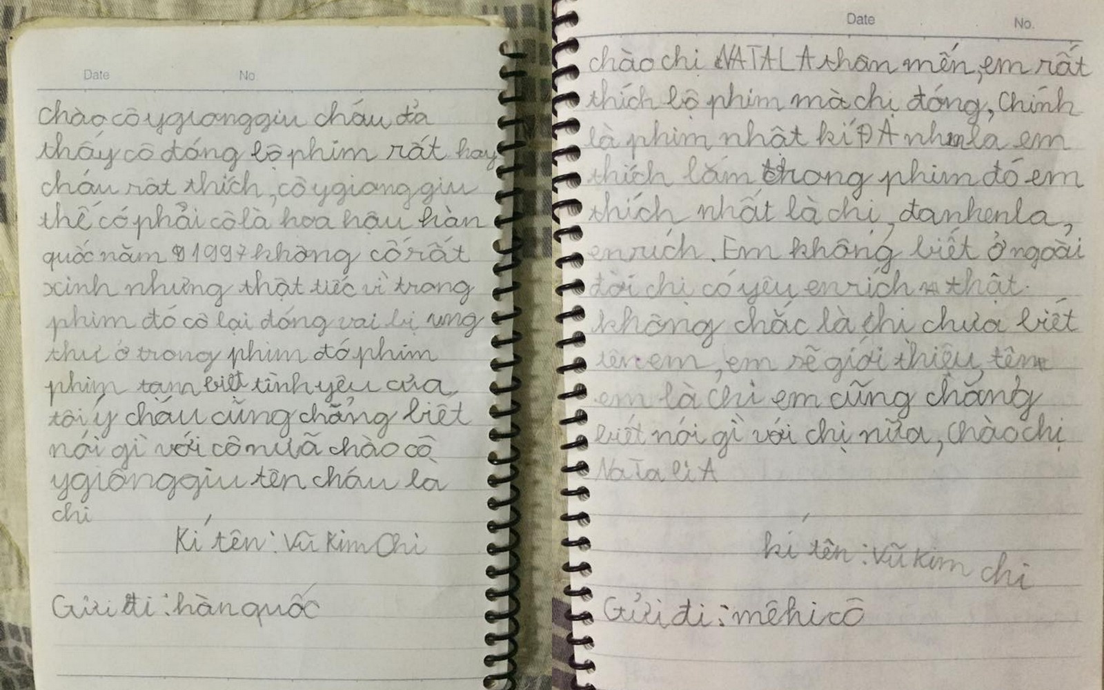 Chào chị Natala thân mến, em rất thích bộ phim mà chị đóng, chính là phim nhật ký Đanhiela. Em thích lắm, trong phim đó em thích nhất là chị Đanhenla, Enrich. Em không biết ở ngoài chị có yêu Enrich thật không, chắc là chị chưa biết tên em, em sẽ giới thiệu tên em là Chi, em cũng chẳng biết nói gì với chị nữa. Chào chị Natalia.