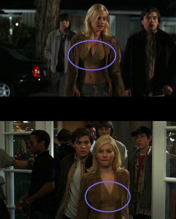 Bộ phim The Girl Next Door (2004) có cảnh quay ở một bữa tiệc trong đó nhân vật Danielle (Elisha Cuthbert) cũng tham gia, cô diện chiếc áo lửng khoe vòng 1 đầy đặn gợi cảm, nhưng chỉ vài phút sau, khi vào bên trong bữa tiệc, vòng 1 của Danielle bỗng dưng thu nhỏ lại như màn hình phẳng.