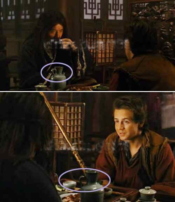 Chiếc quai của bình rượu liên tục thay đổi trong cảnh Túy Tiên Lỗ Ngạn ngồi trò chuyện với Jason Tripitikas (Michael Angarano đóng).