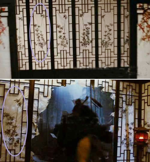 Cảnh Túy Tiên Lỗ Ngạn phi ngựa xuyên qua bức bình phong. Hình vẽ cây trúc ở ô thứ 5 giữa 2 ảnh khác nhau.