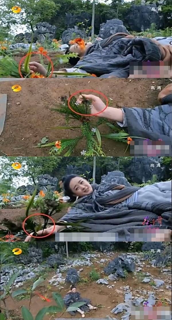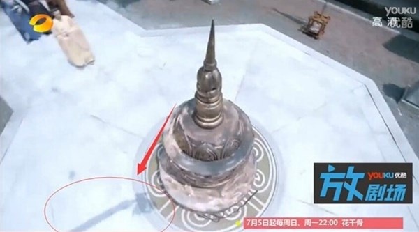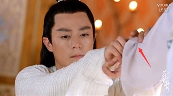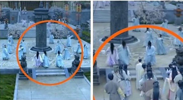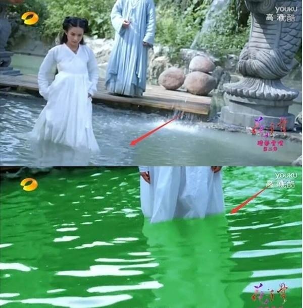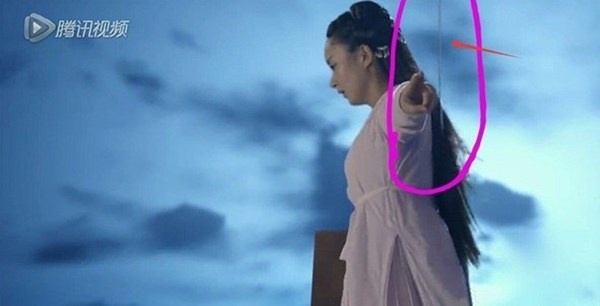 | Trong khâu hậu kỳ, ban biên tập của Hoa Thiên Cốt đã quên xóa bỏ chiếc phông màn màu xanh. |