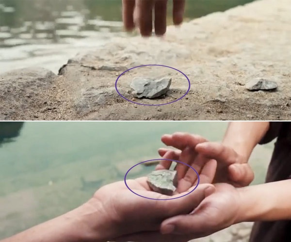 Hòn đá mà sư phụ (ca sĩ Minh Thuận đóng) ném xuống hồ và bay ngược trở lại, sau đó trao cho Nguyên Vũ (Huỳnh Đông đóng) tuy là một nhưng ở hai cảnh quay lại có hình dáng khác nhau.