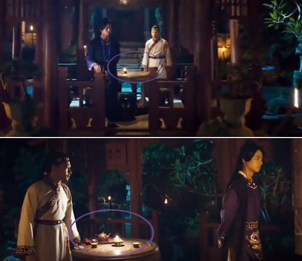 Trong cuộc trò chuyện giữa Nguyên Vũ với Vương gia (Lê Văn Anh đóng), trên bàn xuất hiện ấm trà và 2 chiếc tách dù trước đó không hề có.