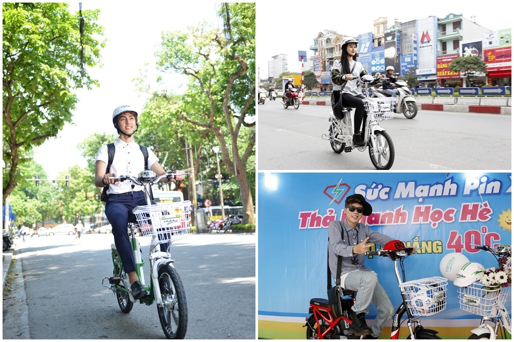 | Ngoài ra, còn có rất nhiều các hot teen cũng mê mẩn chiếc xe đạp điện thời trang như Hà Lade, Bình An, Vanh Leg… |