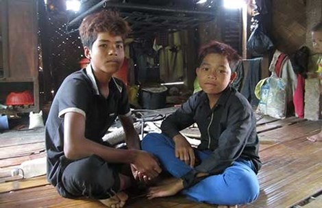 | Hồ Văn Thắng (trái), Hồ Văn Nhơ (phải) cùng học lớp 7 và đều không biết chữ. Ảnh: Pháp Luật TP HCM. |