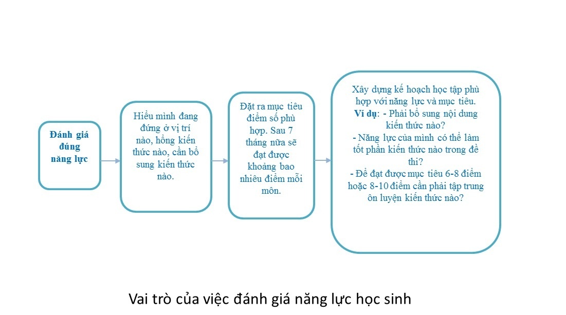 Thầy Lê Bá Trần Phương, một giáo viên chuyên giảng dạy online, cho biết: “Có rất nhiều học sinh thi được 24-25 điểm mà vẫn trượt đại học. Cũng có rất nhiều sinh viên bỏ ngang giữa chừng để ôn thi lại, vì không thích ngành học hiện tại của mình. Vì thế, trước khi bắt đầu ôn thi, các em cần xác định đúng năng lực để đặt ra mục tiêu điểm số vừa sức và chọn trường đại học phù hợp. Điều này không chỉ giúp học sinh vượt qua kỳ thi THPT quốc gia như đúng ý nguyện mà còn ảnh hưởng đến nghề nghiệp và tương lai sau này”.