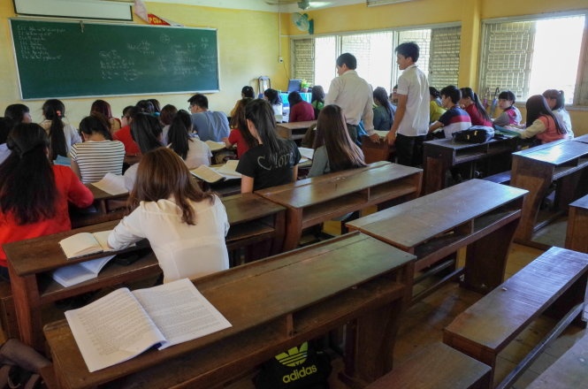 | Buổi học ngày 3/12 của lớp sư phạm văn K15 khá vắng do có 11 sinh viên nghỉ học - Ảnh: Tuổi Trẻ. |
