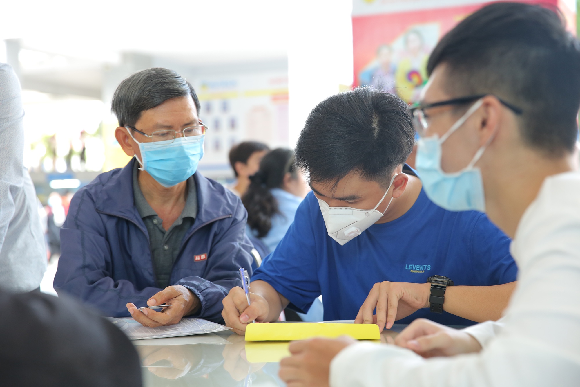 | Nhiều người đeo khẩu trang để phòng, chống dịch Covid-19. Trong năm căng thẳng thi cử do việc học gián đoạn vì dịch bệnh, xét tuyển học bạ phần nào giúp học sinh và phụ huynh đỡ lo lắng. Đây là đợt xét tuyển học bạ thứ tư của HUTECH cho đợt tuyển sinh năm học 2020-2021. Đợt này kéo dài đến ngày 15/8. Trước đó, trường công bố kết quả tuyển sinh cho 3 đợt xét tuyển. Ảnh: HUTECH. |