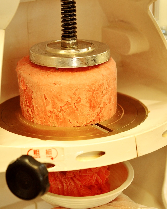 Kem được đóng sẵn thành tảng to tròn, khi có khách gọi, nhân viên sẽ cho vào máy bào ra...
