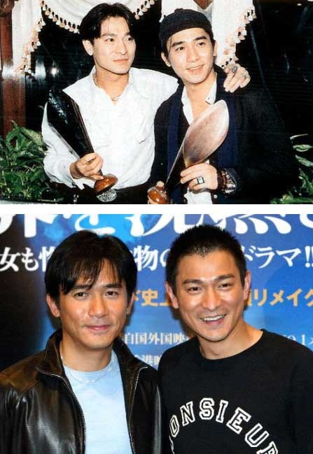 | Lương Triều Vỹ và Lưu Đức Hoa thuộc cùng một thế hệ thành công của showbiz Hoa ngữ. |