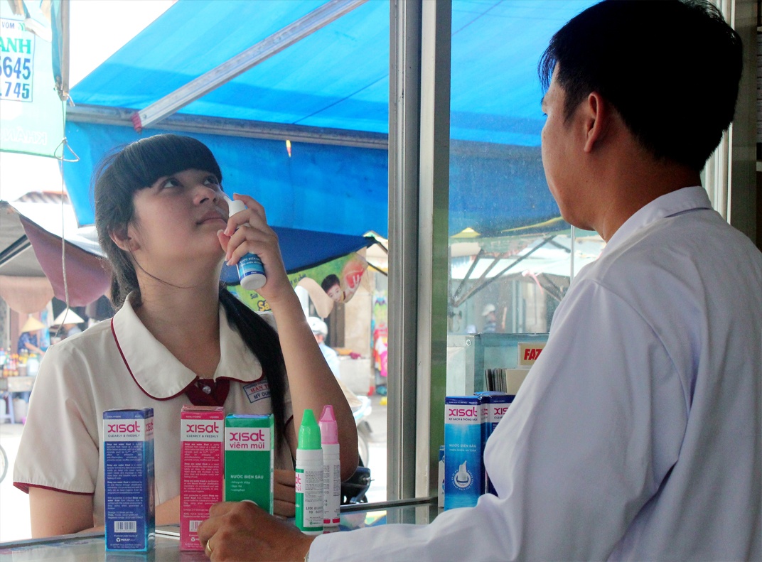 | Một teenager đang thử xịt mũi tại hiệu thuốc. Vệ sinh mũi hàng ngày với nước biển sâu chính là bí quyết cho chiếc mũi xinh luôn khỏe mạnh. |