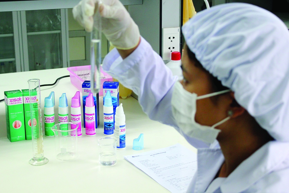 | Xisat là sản phẩm nước biển sâu đầu tiên sản xuất tại Việt Nam có giấy thông hành về kiểm định chất lượng của Bộ Y tế. Trong ảnh: Phòng Kiểm soát chất lượng sản phẩm Xisat tại nhà máy ở tỉnh Hưng Yên. |