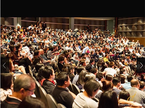 | Khán giả kiều bào đến xem vở Hợp đồng mãnh thú đông kín trong suất diễn tại California. Ảnh: Nghệ sĩ cung cấp |