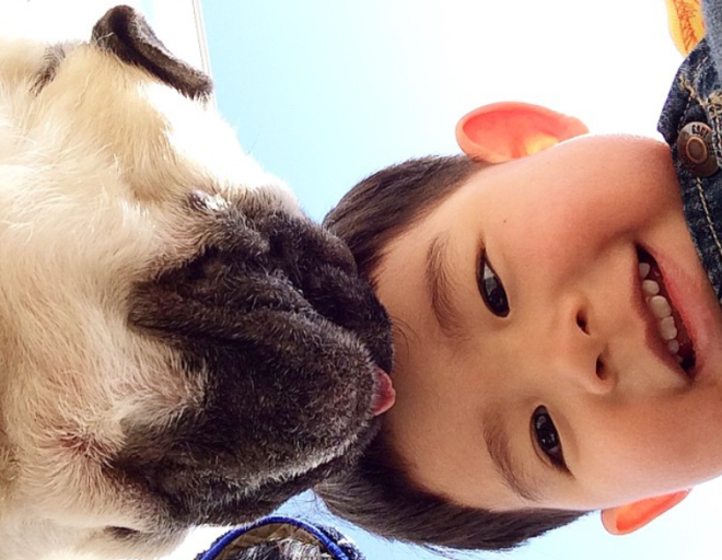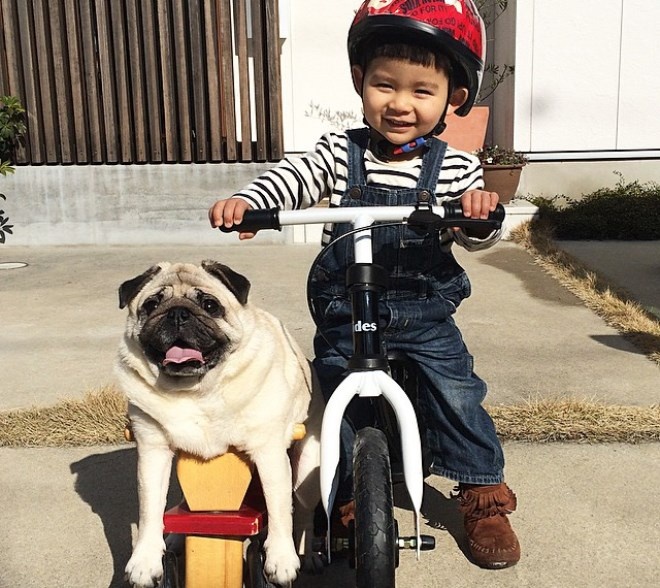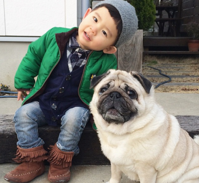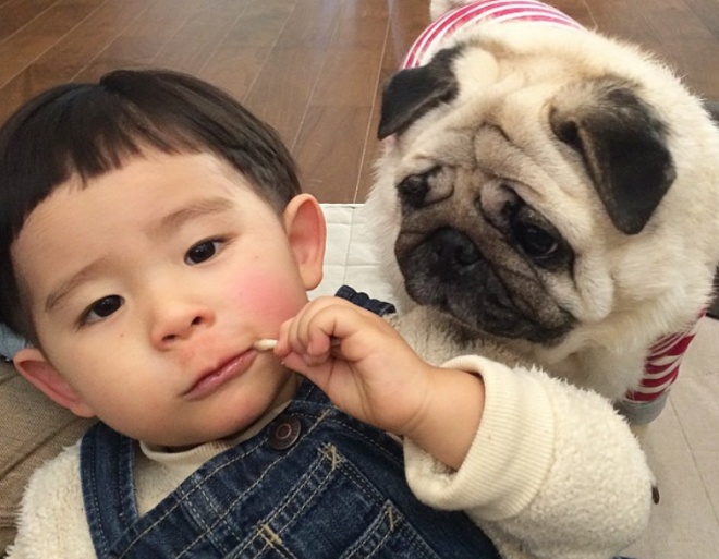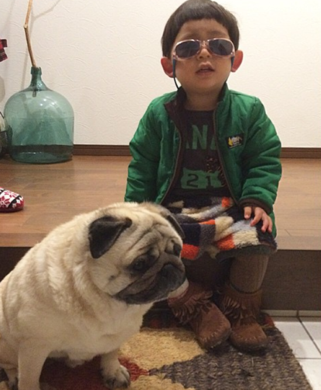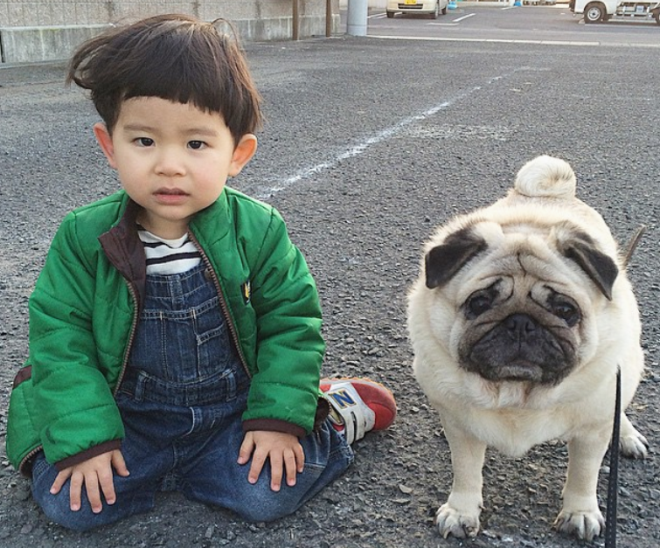 | Vẻ hồn nhiên của Arisu và chú chó Pug. |