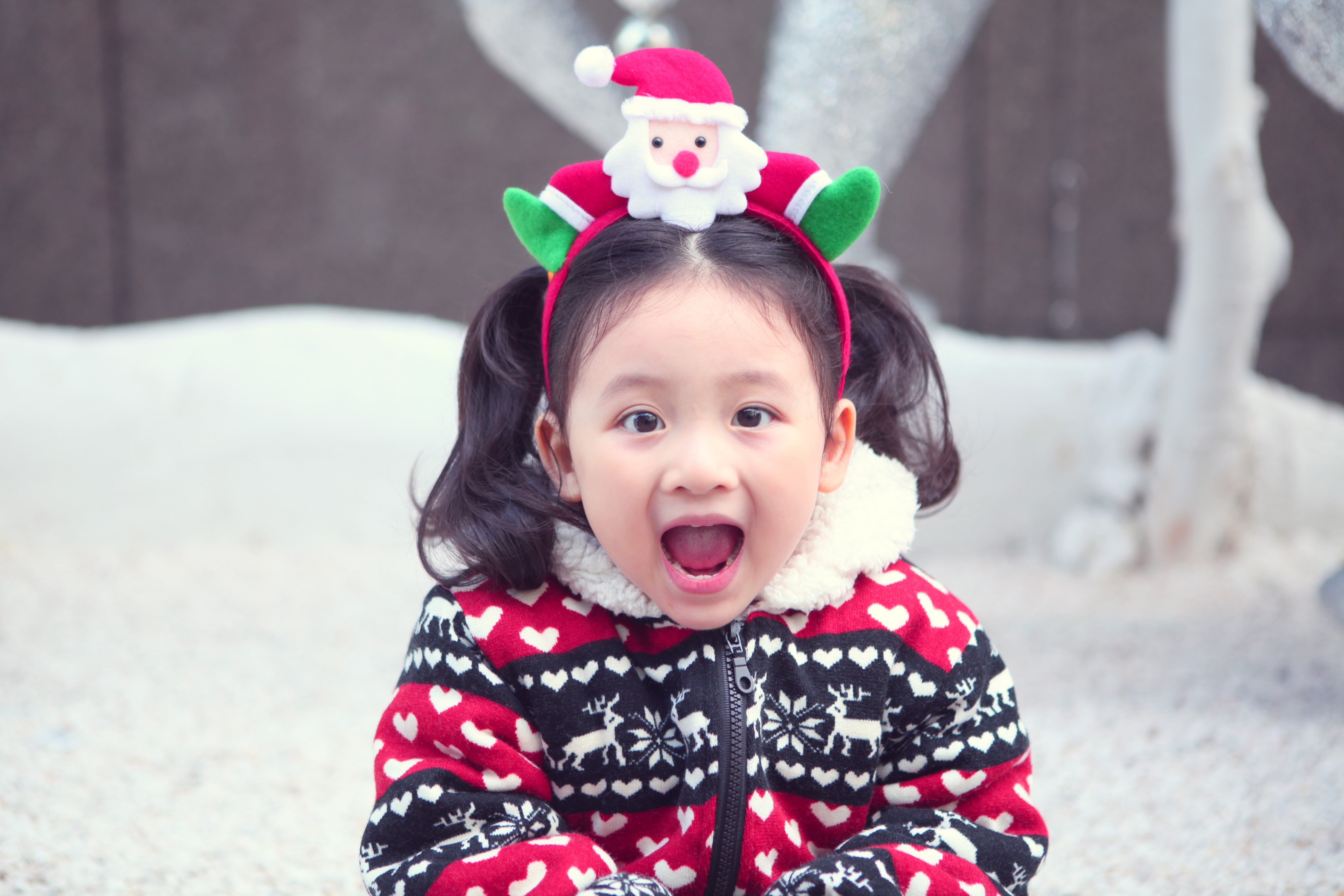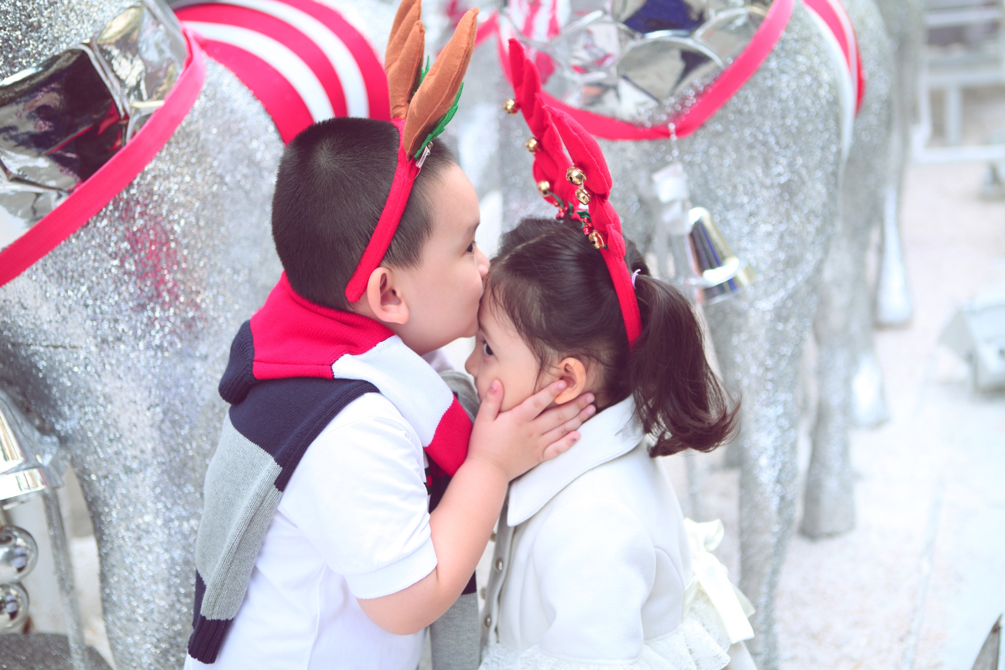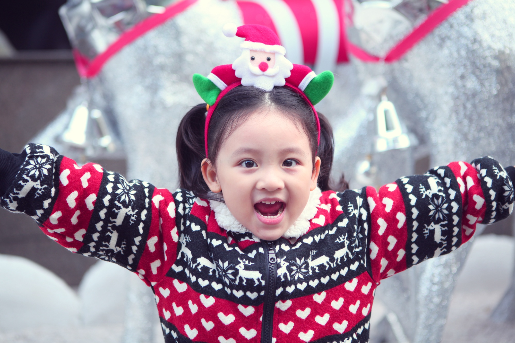 Chọn trang phục có hoạ tiết ngộ nghĩnh hoặc phụ kiện Giáng sinh màu sắc, hai mẫu nhí thu hút mọi người bởi vẻ đáng yêu.