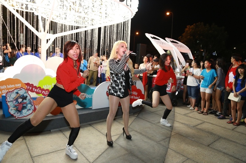 | Buổi diễn còn có sự góp mặt của nữ ca sĩ Mia. Cô diện trang phục cá tính với áo vest họa tiết ca-rô cùng quần shorts ngắn, hết mình thể hiện những vũ đạo sôi động, khuấy động không khí buổi ra mắt sản phẩm mới. |