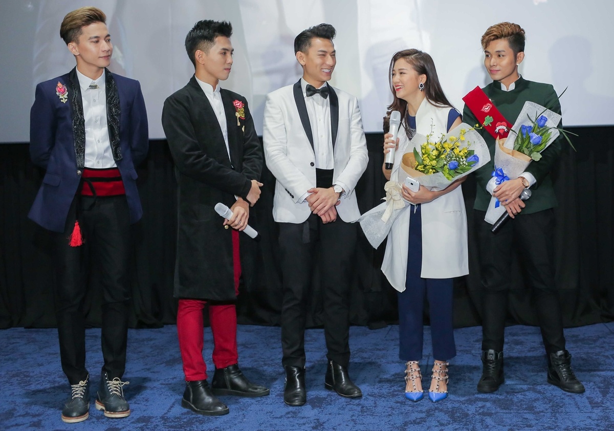 | Nhóm 365 và hot girl Salim trong buổi họp báo ra mắt MV Selfie. |