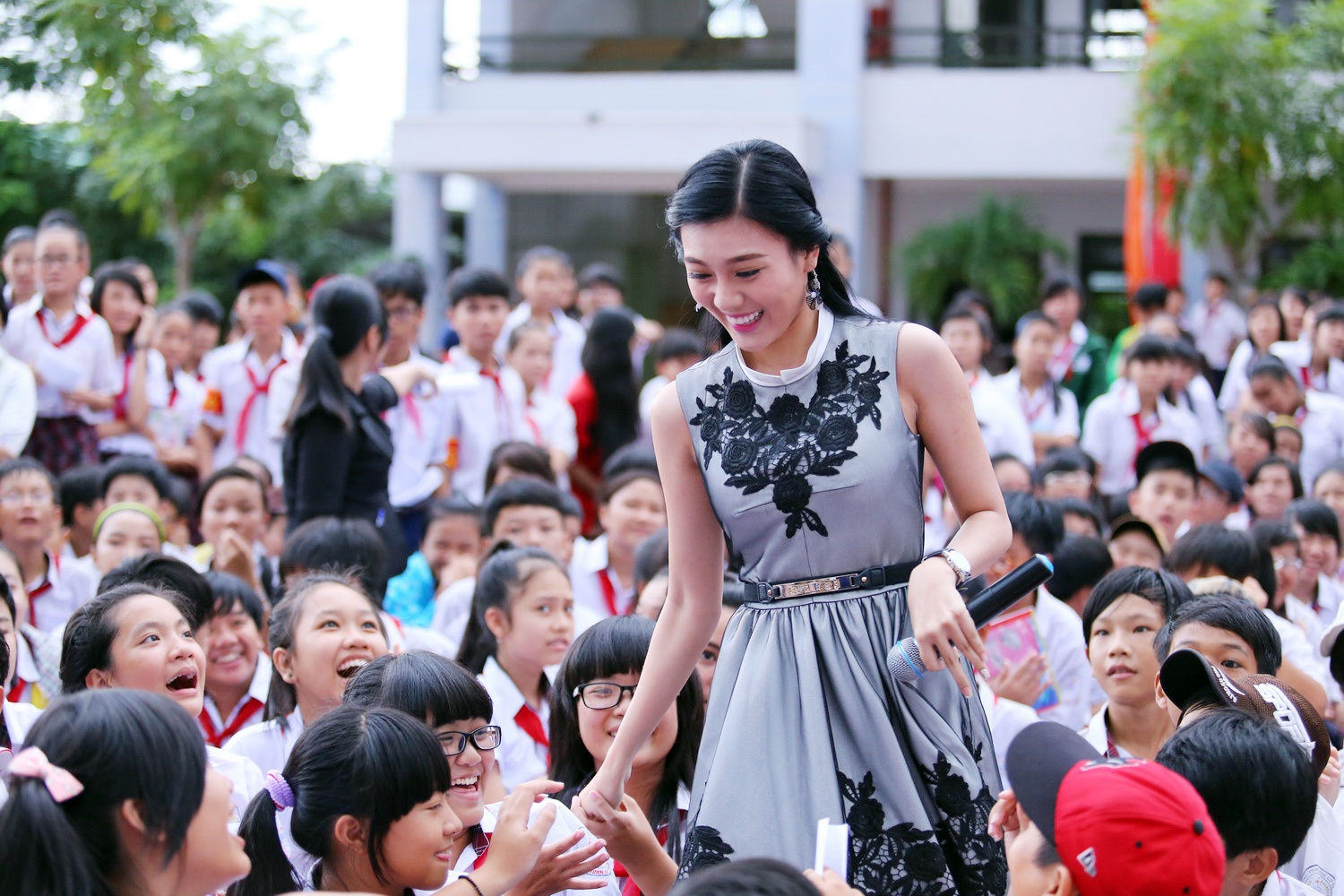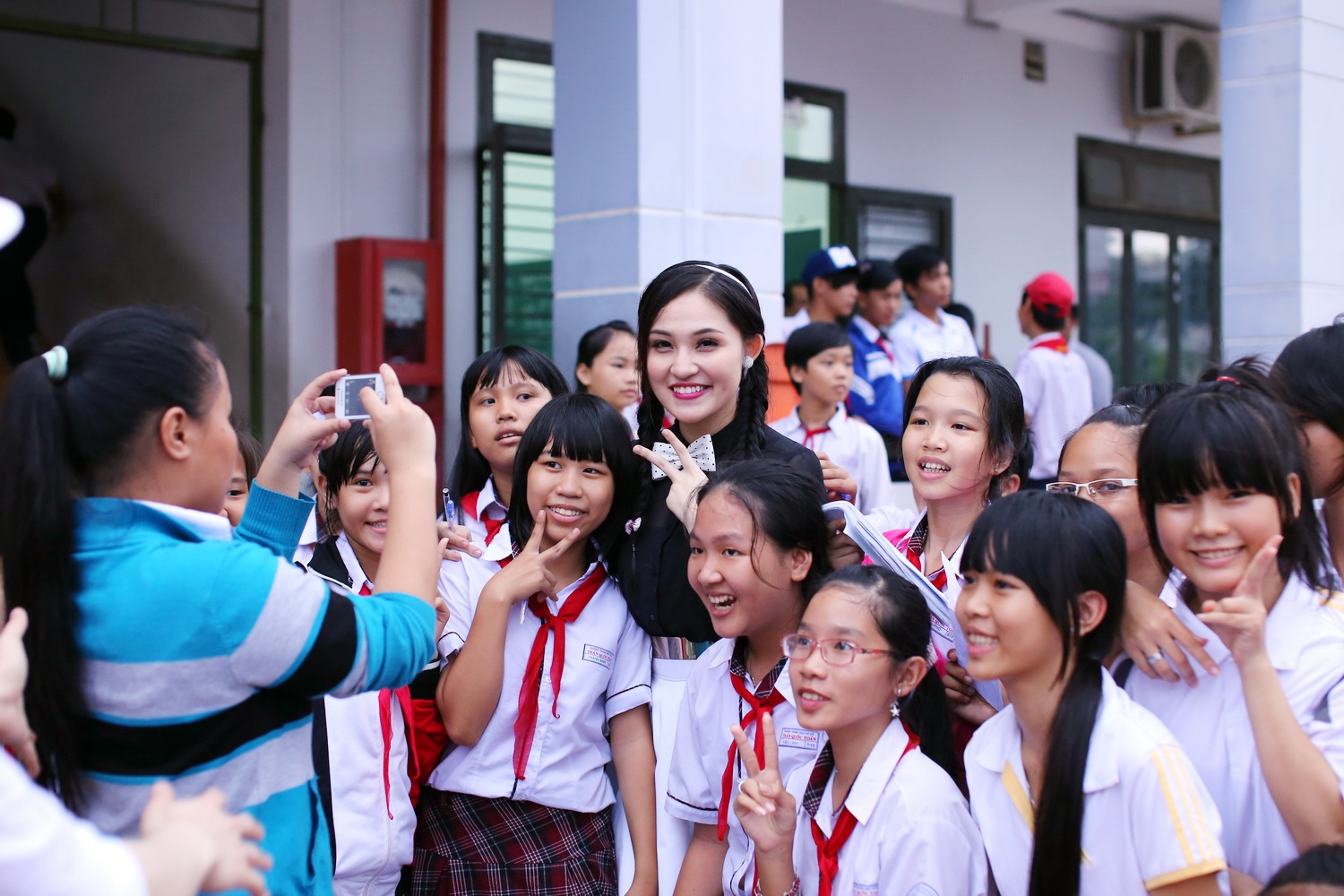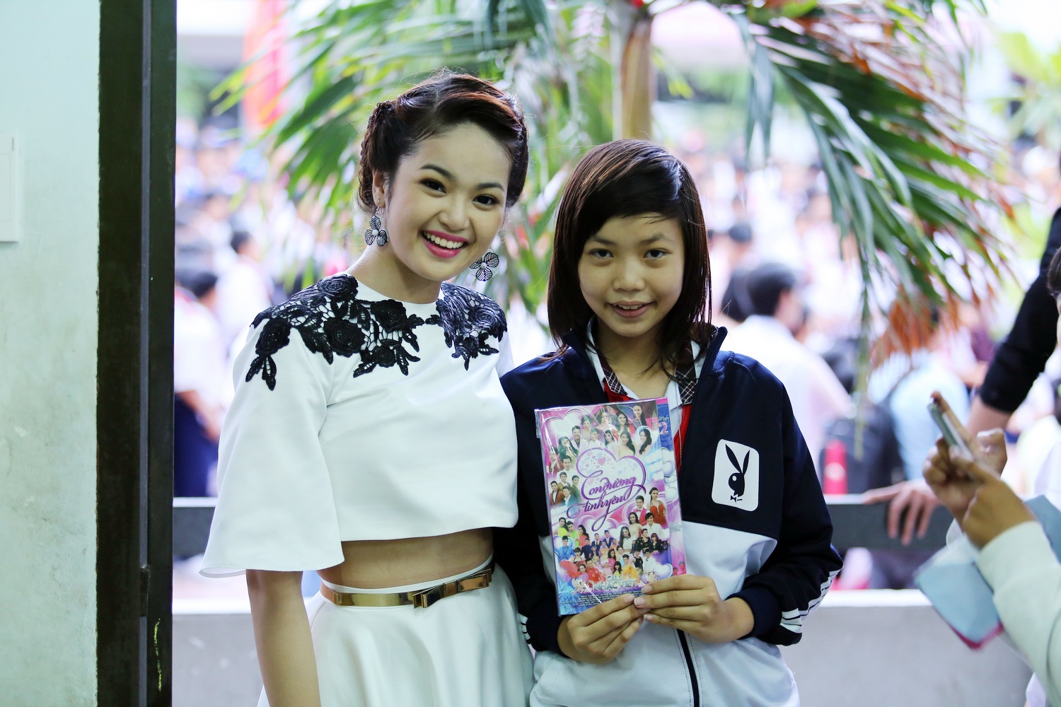 | Các bạn học sinh rất dễ thương và hồn nhiên đã làm cho Mỹ An và nhóm TVM rất xúc động. Đây chính là động lực để các cô gái thích thú được tham gia biễu diễn và giao lưu trong những chương trình tại các trường học. |