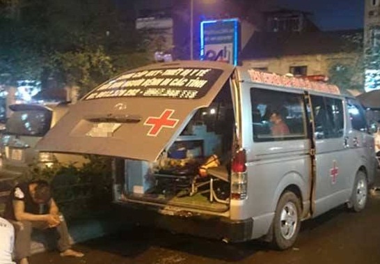 Tối 23/3, xe cấp cứu biển số Nghệ An chở thi thể một bé trai 5 tuổi cùng người nhà vừa ra cổng bệnh viện Việt Đức (Hà Nội) bị một nhóm người người chặn lại. Họ yêu cầu tài xế đưa tiền mới cho ra khỏi bệnh viện.
