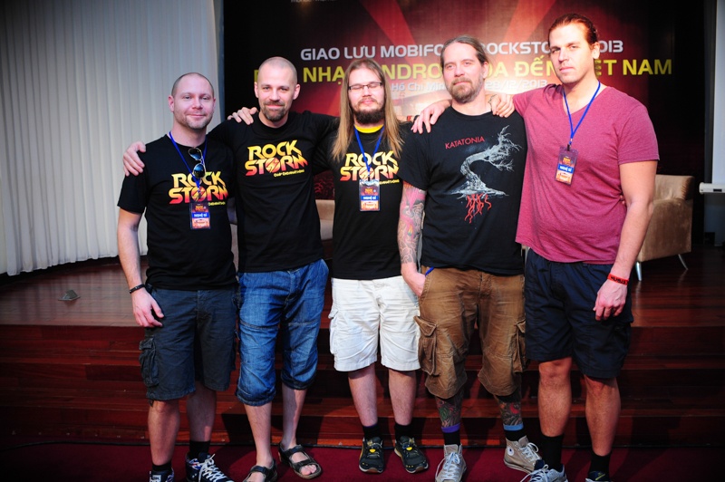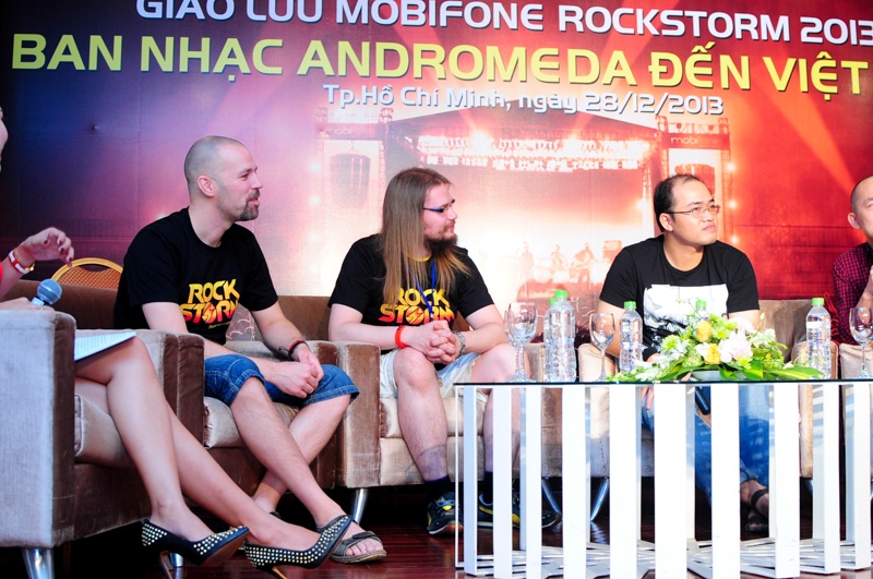 Sau một đêm nghỉ nơi, sáng nay (28/12), ban nhạc rock đến từ Thụy Điển Andromeda đã có buổi giao lưu cùng fan hâm mộ trước khi chính thức bước lên sân khấu trình diễn tại đêm nhạc RockStorm vào đêm nay tại sân vận động Quân khu 7 (TP.HCM).