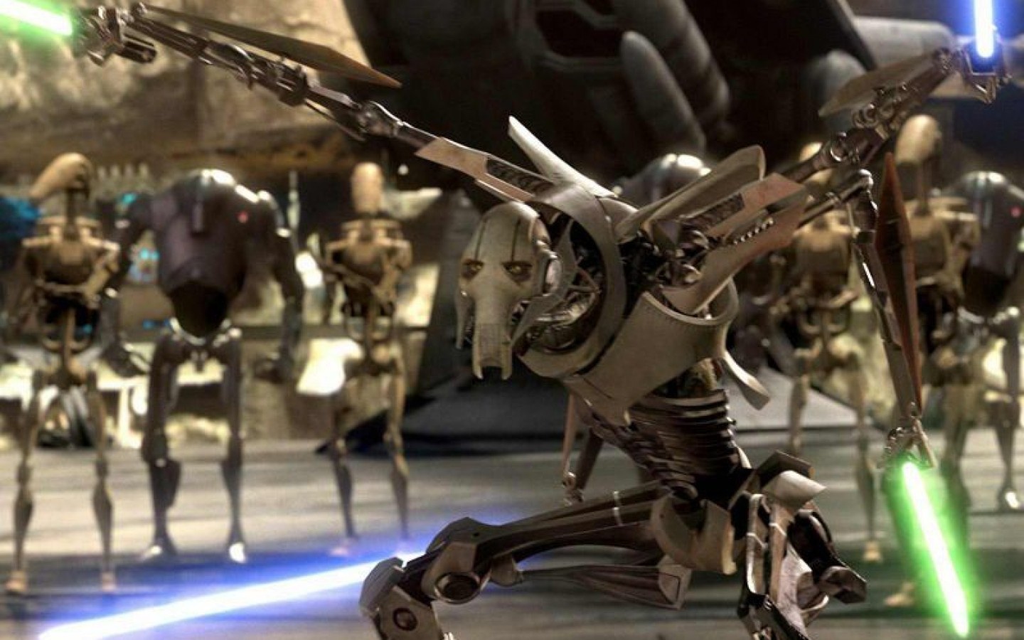 Grievous trong Star Wars: Revenge of the Sith: Chiến binh robot với bốn tay cầm gươm ánh sáng tưởng như là một kẻ nguy hiểm bởi các Jedi phải rất vất vả để đối phó với hắn. Tuy nhiên, nếu xem xét kỹ lại thì viên tướng quân này khá mờ nhạt, chỉ có mỗi nhiệm vụ cản đường các nhân vật chính diện.