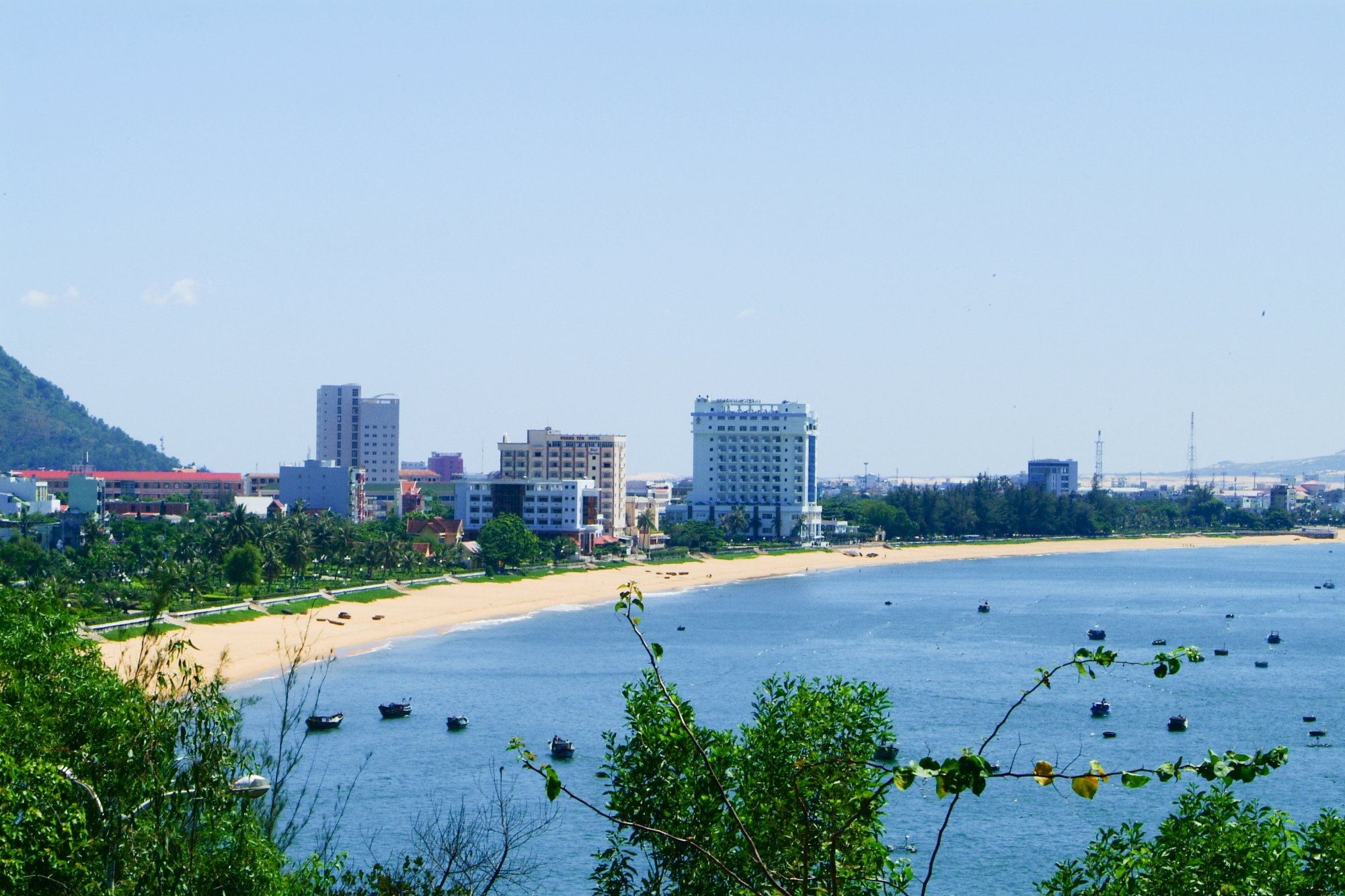 1. Bãi Quy Nhơn trải dài 5 km từ mũi Tấn đến Ghềnh Ráng, TP Quy Nhơn. Đây là một trong những bãi biển hiếm hoi nằm trong trung tâm thành phố, nước xanh, cát trắng và uốn cong theo hình vầng trăng khuyết.