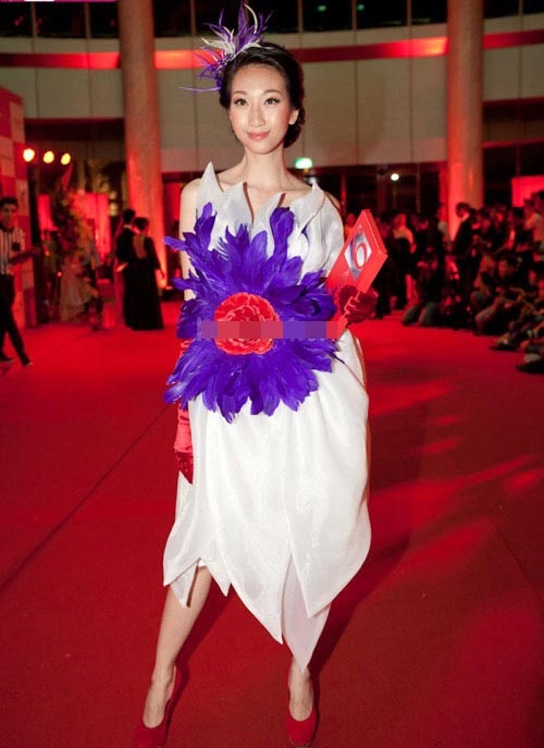 | Và tất nhiên, nhắc tới thời trang "khác người", chắc chắn cũng không thể không nhắc tới Trà Ngọc Hằng với bộ váy bồi bàn đính hoa "nổi tiếng". |
