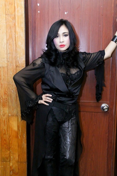 | Thanh Lam cũng sở hữu vẻ ngoài tương tự với cả "cây" đen rườm rà voan-ren. Một kiểu tạo hình rất thường thấy ở nhân vật phản diện trong chuyện cổ tích. |