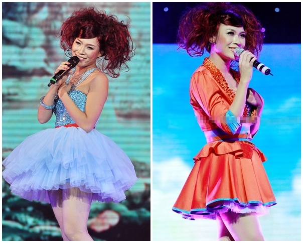 | Phi Thanh Vân từng say mê những kiểu mốt màu sắc lòe loẹt khi cô theo đuổi sự nghiệp ca sĩ. Không chỉ tra tấn người nghe bằng giọng hát thiếu kỹ thuật, không cảm xúc, thiếu sự đầu tư, "nữ hoàng dao kéo" còn để lại ấn tượng về hình ảnh thời trang thảm họa. |