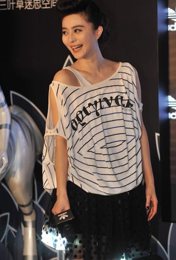 | Phạm Băng Băng không thành công với phong cách cá tính. Bộ trang phục làm cô rất "quê mùa". Kiểu trang điểm dày cộm cũng khiến gương mặt mất đi sự thanh thoát. |